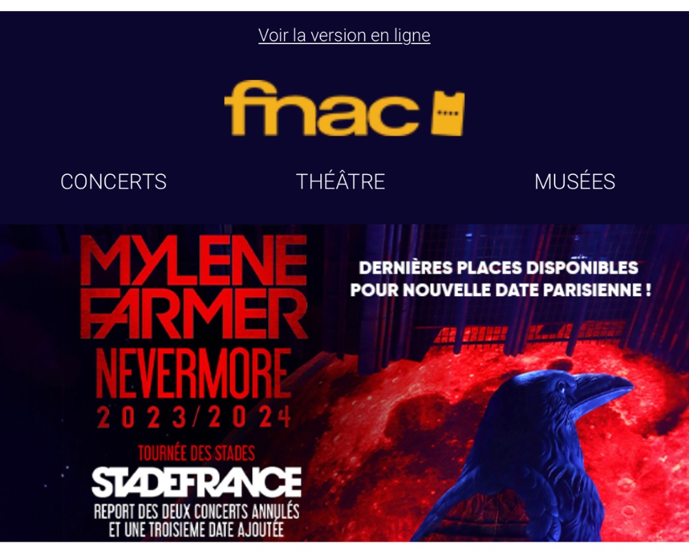 Erzengel hat geschrieben: 31. Jul 2023, 19:24 Laut FNAC gibt es nicht mehr viele Plätze für das zusätzliche Konzert am 1. Oktober