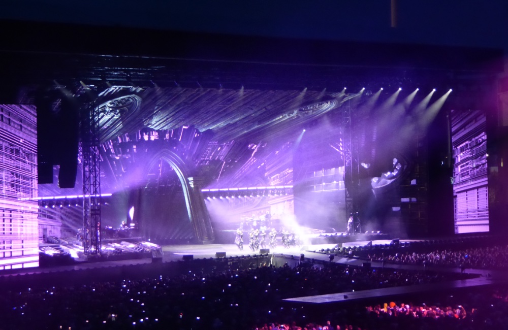 Die Bühne selbst war aber gut einsehbar - zum Glück in dieser Konfiguration des Stadions nicht so weit weg. Trotzdem waren die Tänzer im Detail schwer auszumachen.